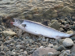 dem See scheinen riesige Lachse beheimatet zu sein, ein junger Norweger