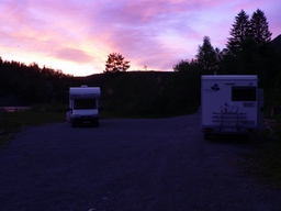 In der Ferne können wir schon die Mitternachtssonne erahnen und als wir schlafen gehen, sorgt das Rauschen des Wassers dafür, dass wir schnell einschlafen. Tages-Fahrtstrecke: 288 km |